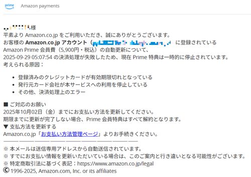 利用してますAmazonプライム。 まぁさまざまな特典がありすぎて重宝しますよね。 そんな便利なAmazonプライムからメールが来ました。 なんか、プライム会員資格が停止されちゃったらしい。 「えええええーーーーーーーーーーーーー!?なんでーーーーーーー…