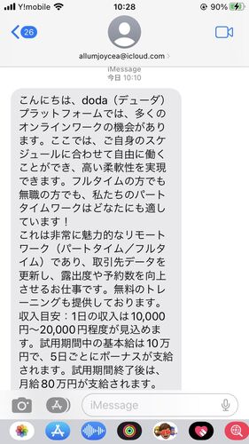 みなさんのスマホにdoda(デューダ)プラットフォームからショートメールが来てませんか。 なんか非常に儲かる話らしいです。日給10000円~20000円、月に80万も可能ですって。 そんなわけないやろw doda(デューダ)プラトフォームからのSMS それは、こんな…