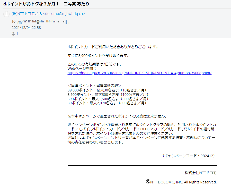 NTTドコモからメールが来ました。